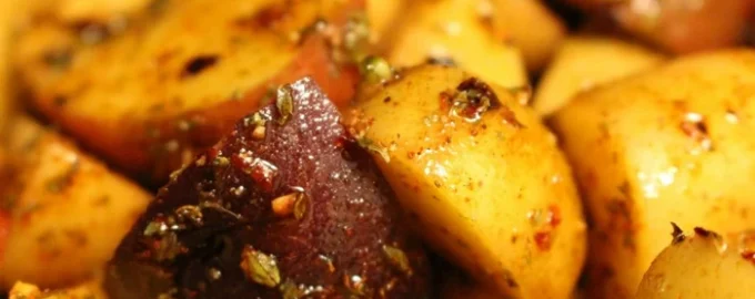 बेकिंग शीट पर ओवन में ग्राम शैली के आलू – नुस्खा