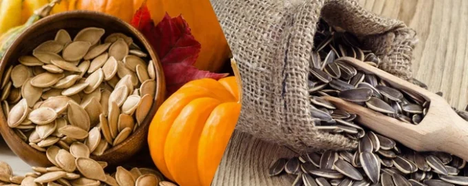 फोटो: खुले स्रोतों से कद्दू और सूरजमुखी के बीजों में तीन पोषक तत्व महत्वपूर्ण मात्रा में होते हैं हमारे भोजन में पोषक तत्व जोड़ने के लिए कद्दू के...